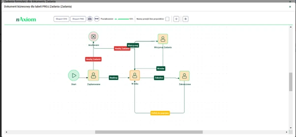 The project card in the nAxiom application has been designed with intuitiveness and work ergonomics in mind. It allows for quick updating of information and monitoring of progress, which makes it an indispensable tool in effective project management.