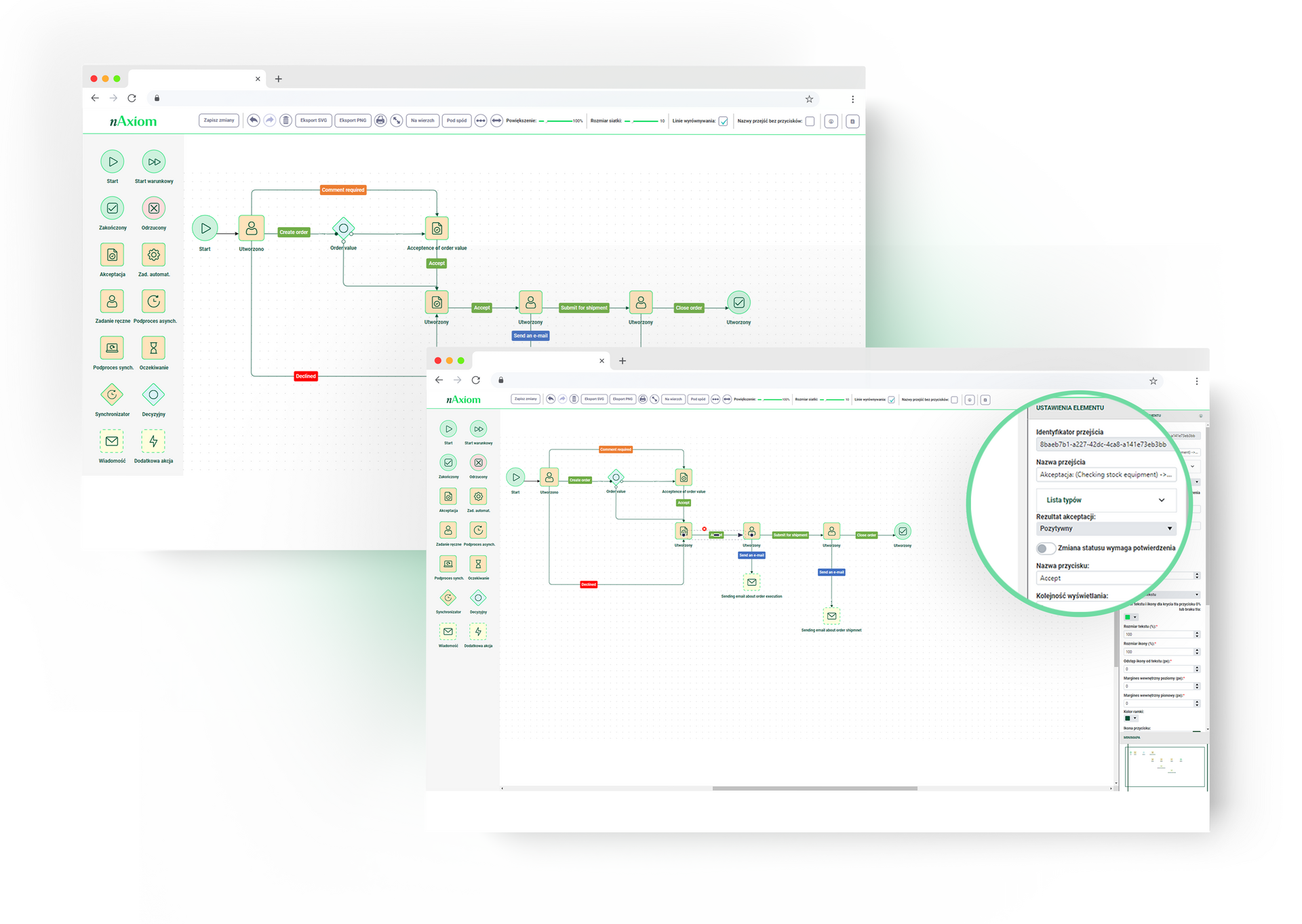 Szereg dodatkowych funkcjonalności zastosowanych w platformie low-code nAxiom czyni z niej unikalne