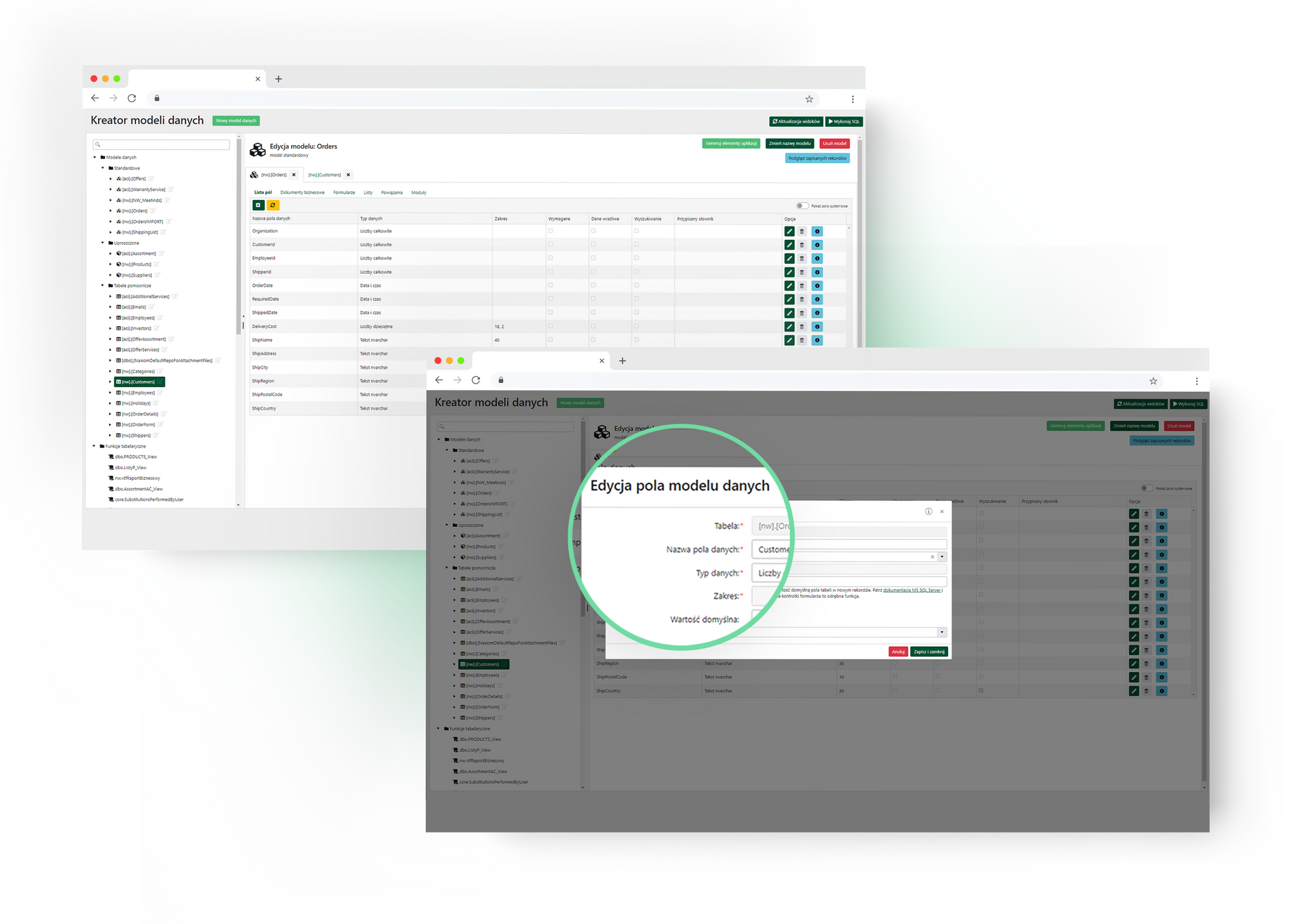 Zaawansowane narzędzie do graficznego modelowania interfejsów użytkownika. UX/UI Builder pozwala łatwo i szybko tworzyć nowe aplikacje biznesowe, formularze, listy czy raporty za pomocą predefiniowanych szablonów i wizzardów. Krok po kroku prowadzi użytkownika do celu, jakim są wielokanałowe i ergonomiczne rozwiązania biznesowe.