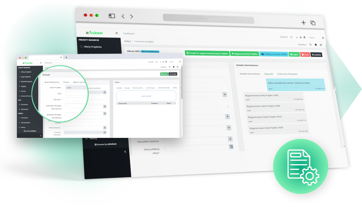 Platforma low-code nAxiom to autorskie środowisko służące do szybkiego i łatwego tworzenia wydajnego i bezpiecznego, dedykowanego oprogramowania. Pomaga organizacjom w transformacji cyfrowej poprzez usprawnienie i automatyzację procesów realizowanych w różnych obszarach prowadzonej działalności każdej organizacji – firmy, instytucji oraz uczelni.