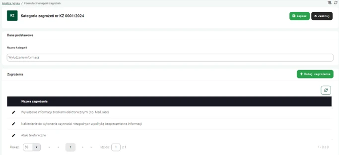 - Tworzenie kategorii zagrożeń