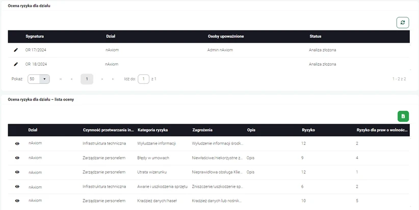 Wyniki analizy są podstawą do opracowania strategii postępowania z ryzykiem. Aplikacja nAxiom dokumentuje wszystkie działania prewencyjne i naprawcze, które są podejmowane w celu minimalizacji zidentyfikowanych zagrożeń. Procesy te są szczegółowo opisywane, a podjęte działania raportowane, co umożliwia śledzenie postępów i zapewnia przejrzystość w zarządzaniu ryzykiem.