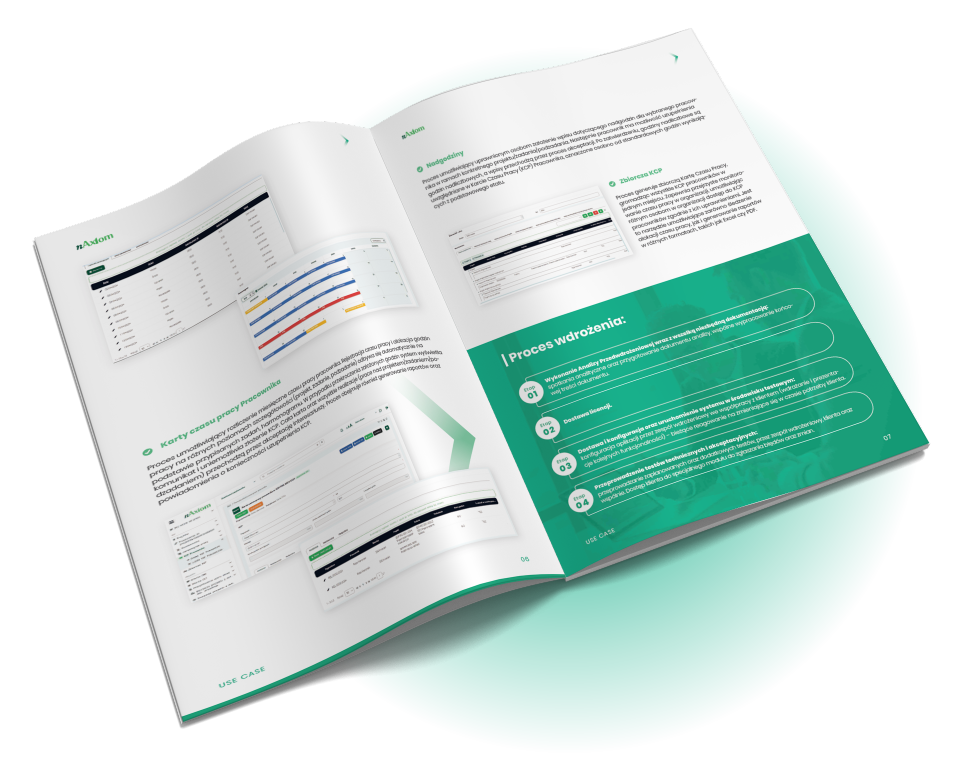 Wdrożenie dedykowanego rozwiązania zbudowanego na platformie nAxiom usprawniło procesy zarządzania czasem pracy, zapewniło też kontrolę nad związanymi z tym danymi. Jednocześnie modułowa struktura rozwiązania umożliwia dalszy rozwój i dostosowywanie systemu do ewentualnych przyszłych potrzeb.